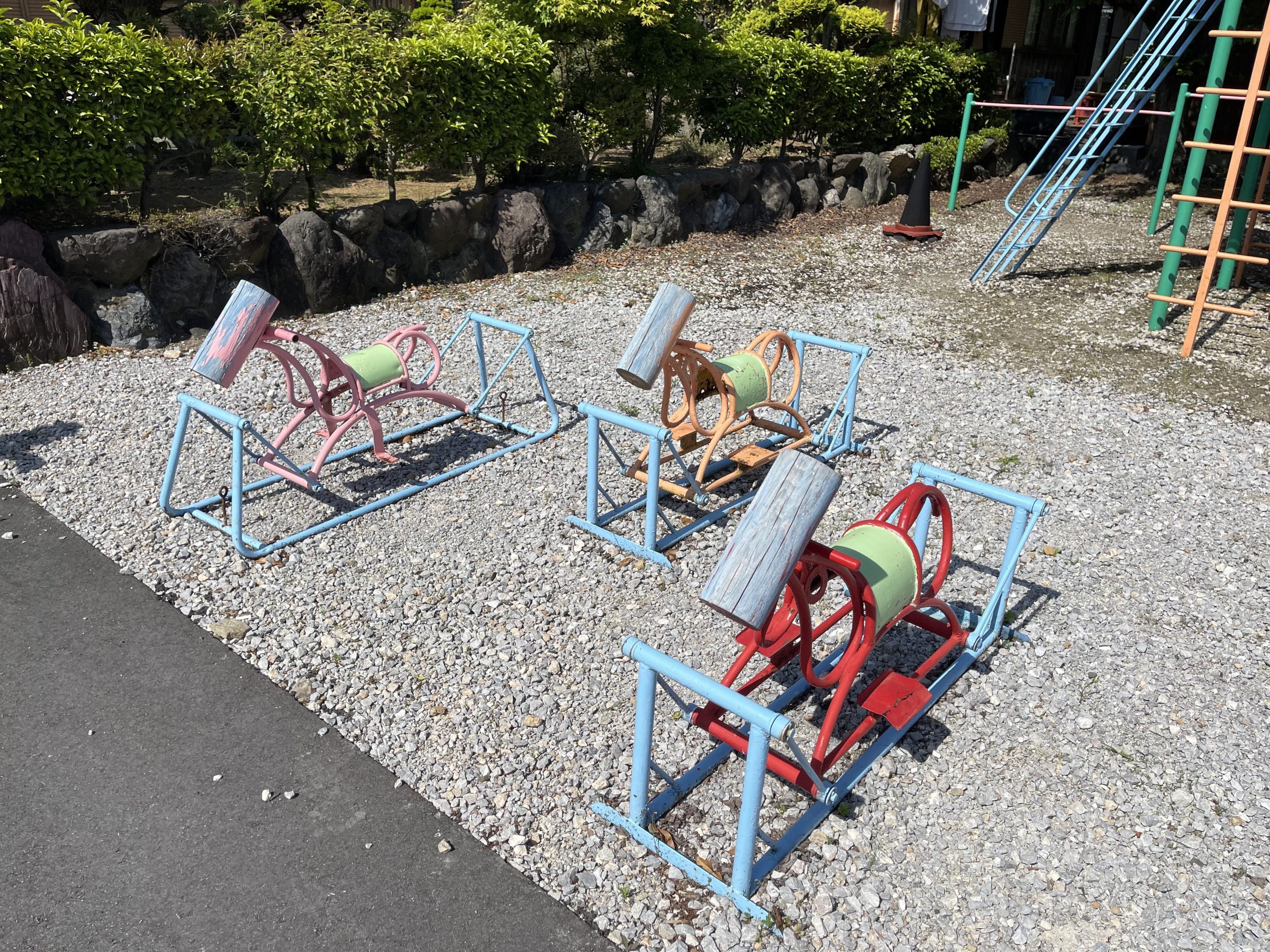 滑り台やブランコ、鉄棒に、太鼓橋、さらにスプリング遊具など幅広い年代の子供が遊べる遊具がそろっています。